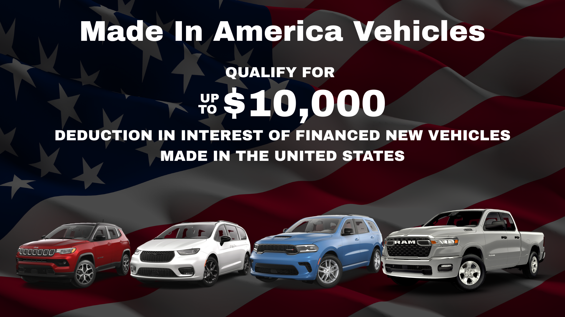 At Eide Chrysler St. Cloud, we’re proud to offer a lineup that’s not only built for performance, comfort, and value—but also assembled right here in the United States. Now, thanks to recent tax law updates, purchasing a vehicle with final assembly in the U.S. comes with an extra financial benefit: you may be eligible to deduct up to $10,000 in interest paid on your new vehicle loan.